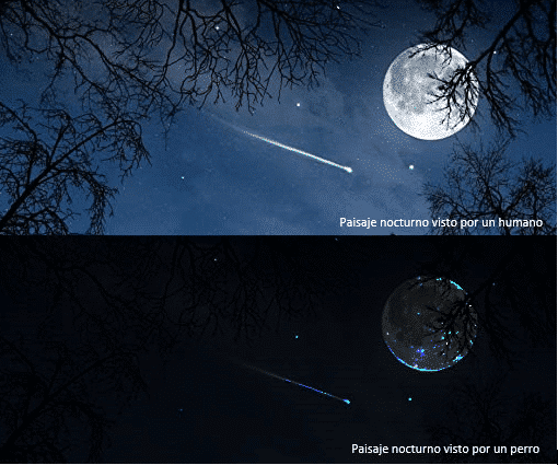 Los perros tienen menos agudeza visual que los seres humanos, sin embargo pueden ver perfectamente por la noche, como si estuviera todo iluminado.