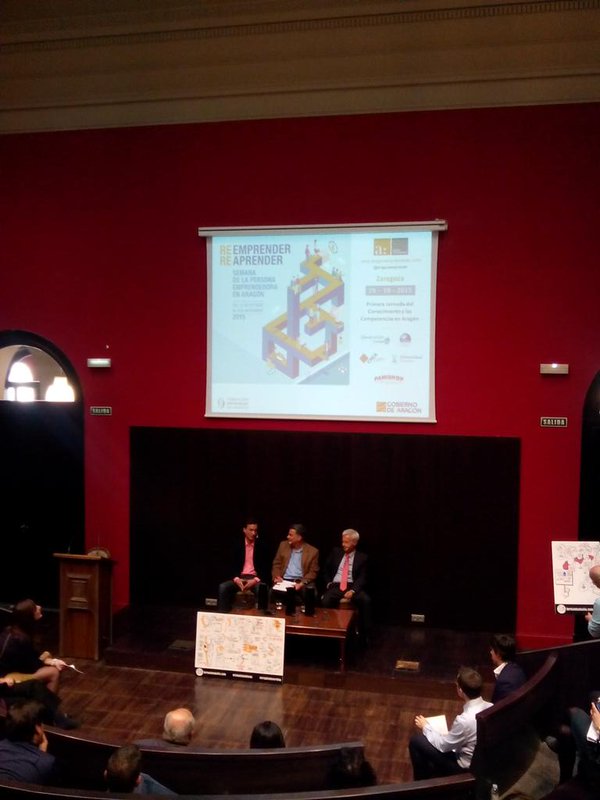 Un poco más adelante, el 29 de octubre, nos animamos a asistir a las I Jornadas del Conocimiento y las Competencias de Aragón, ¿Tenemos talento? ¡Aragón escúchanos!, en el Paraninfo de Zaragoza. Estas jornadas se enmarcan dentro de la Semana de la Persona Emprendedora en Aragón y fueron un foro para compartir las experiencias de varias generaciones de emprendedores aragoneses, debatir los retos futuros a los que los jóvenes nos enfrentaremos y conocer las diferentes plataformas de desarrollo de carreras profesionales a los que los ciudadanos aragoneses podemos acceder para emprender, crecer e innovar. Pudimos disfrutar mucho de sus experiencias y de los distintos proyectos emprendedores que convergieron ese día.
