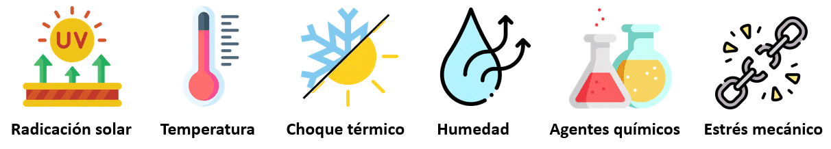Los fallos por envejecimiento acelerado se suelen producir por la acción de un agente externo que degrada alguno de los componentes del material o producto. A continuación, os indicamos que agentes externos son los más comunes: